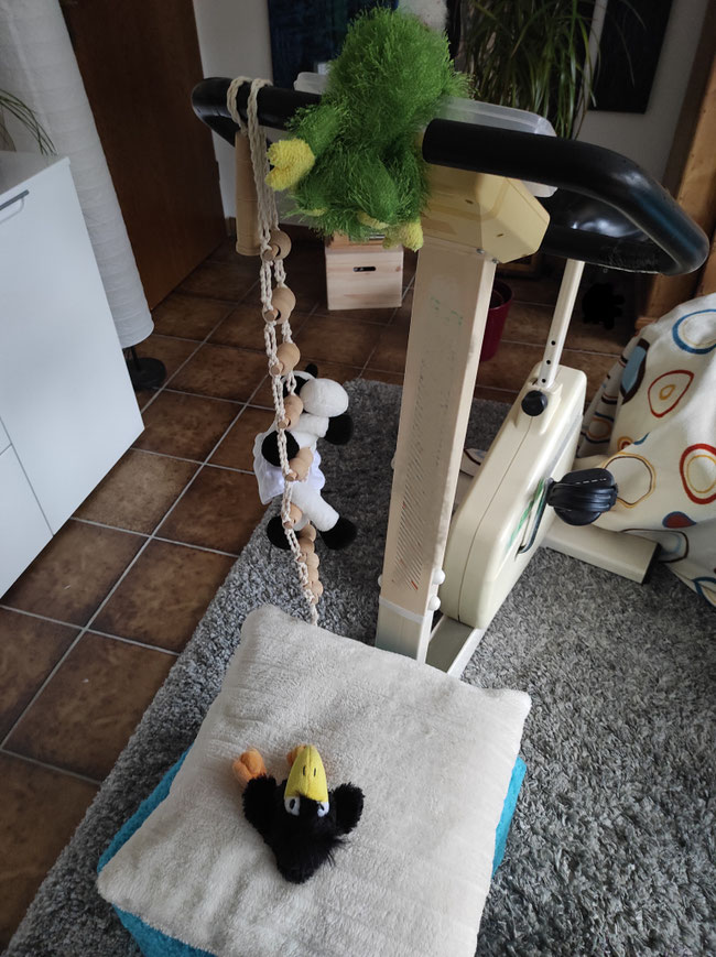 Gleich bist du dran, Toni! Und dann fahren wir Karussell auf den Pedalen des Heimtrainers!