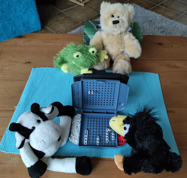 Hallo Kinder! Ich bin immer noch auf dem KuTi-Hof! Das Frühstück war super! Da kommt Froschi! Wir spielen jetzt zusammen "Schiffe versenken! Los geht's! "