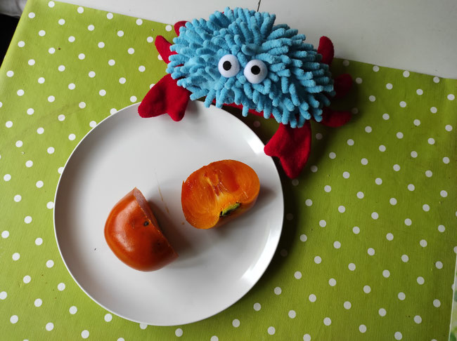 Macht's gut, Kinder - und probiert doch auch mal etwas Neues aus! Hier noch ein Tipp für euch: Kakis müssen orange sein. Sie sollten nicht ganz hart sein und nicht zu viele braune Stellen haben, dann sind sie gut.
