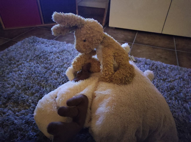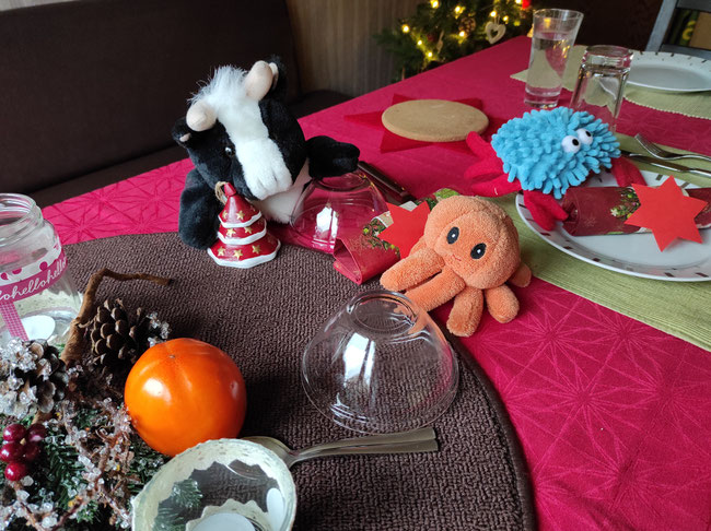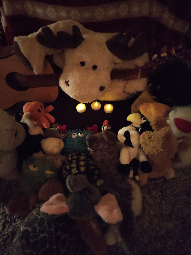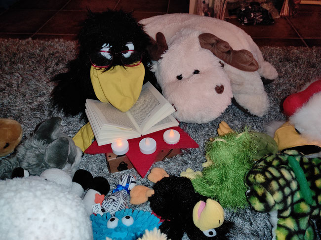 Damit uns das Warten leichter fällt, lesen wir uns schöne Weihnachtsgeschichten vor. ROCCO hat gerade eine vorgetragen. Sie handelt von der Kuh Angela, die den Armen im Winter jeden Abend heiße Milch mit Honig brachte, damit sie nicht erfroren. Die Kuh hat auch noch die neugeborenen Kinder gewärmt und sie nachts heimlich in ihren kleinen Stall gelassen.