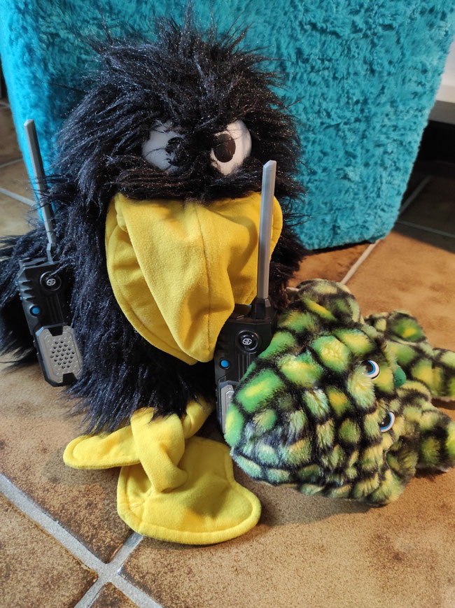 Ich habe zu Weihnachten zwei Walkie-Talkies - also Funkgeräte - bekommen. Das ist super! Eines davon gebe ich Odilo für den Wachgang. Dann kann er mir sofort melden, wenn er jemandem zum Anpacken braucht oder irgendetwas nicht stimmt.