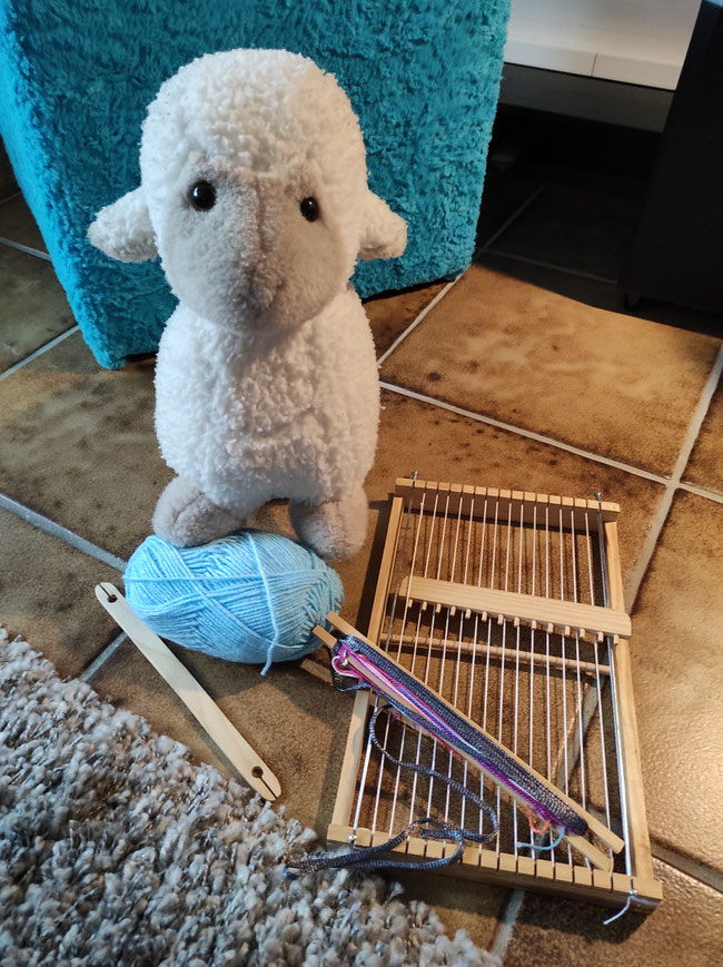 Hier seht ihr meinen neuen Webrahmen. Damit kann ich aus meiner eigenen Wolle schöne Dinge herstellen. Ich werde eine Tasche weben, einen Schal und vielleicht auch einen kleinen Teppich. Morgen mache ich mich an die Arbeit.