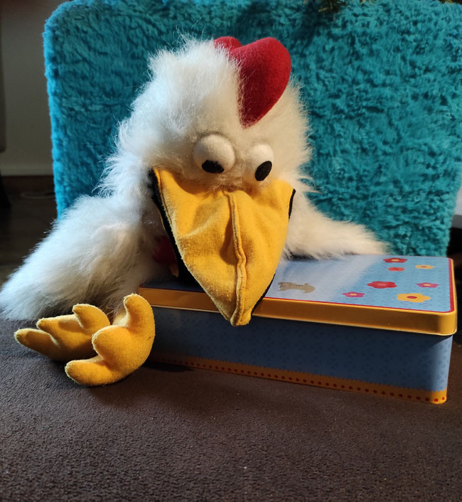 Diese schöne Dose habe ich zu Weihnachten bekommen. Ich werde darin Dinge aufbewahren, die mir wichtig sind und geschützt werden sollen. Zum Beispiel die Fotos von Tonis erstem Geburtstag; auch die schöne Kette, die ROCCO mir geschenkt hat, als ich Tonis Ei gelegt habe.