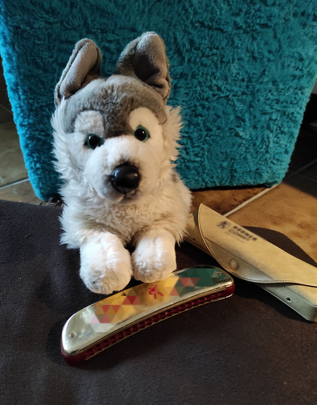 Ich habe eine Mundharmonika geschenkt bekommen! Es ist ein wirklich hübsches Instrument und sieht so edel aus. Jetzt können Hanno und ich auf zwei Instrumenten zusammen spielen. Bestimmt fallen uns noch viele schöne Lieder ein.