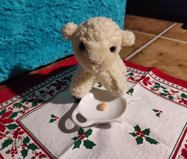 Ich bin der Glückspilz, der die Mandel auf den Löffel bekam! Das bedeutet, ich habe im neuen Jahr besonders viel Glück!