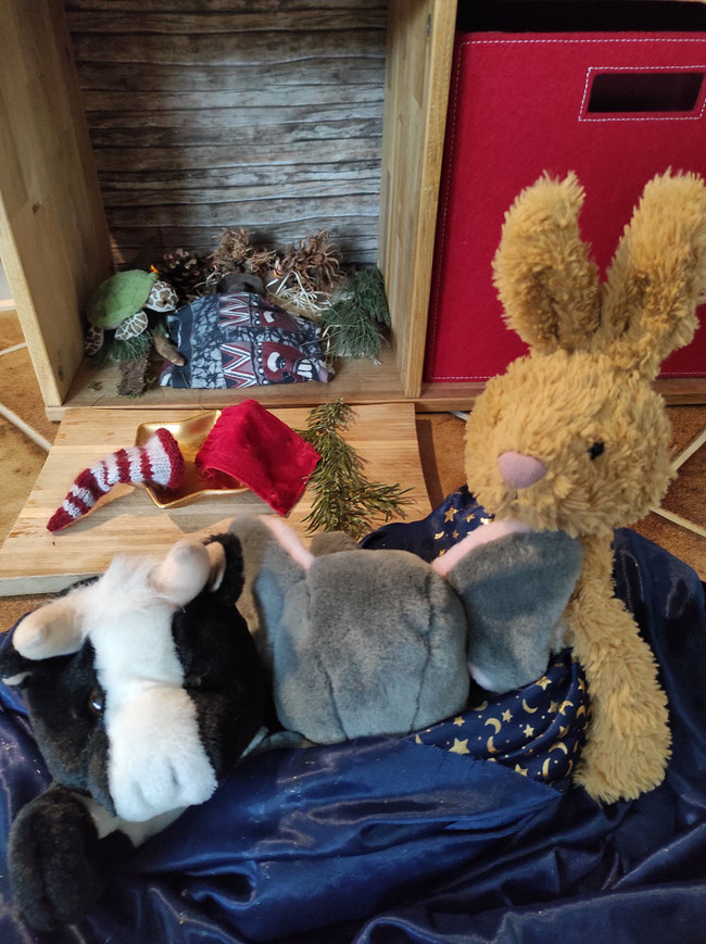 Vielleicht noch eine Mütze aus weichem Moos? - Prima!