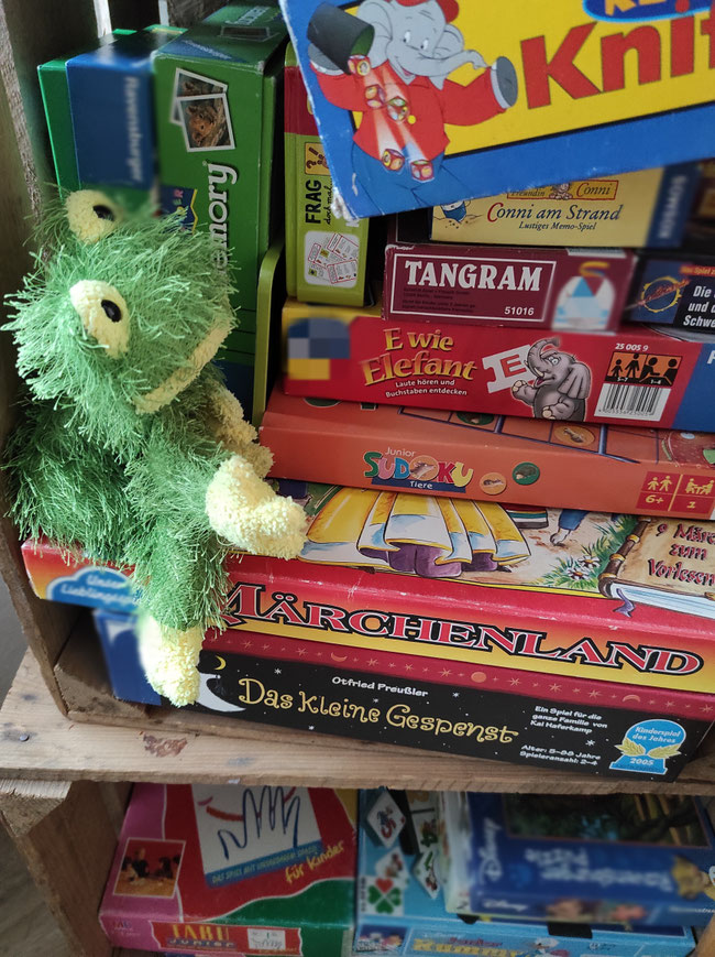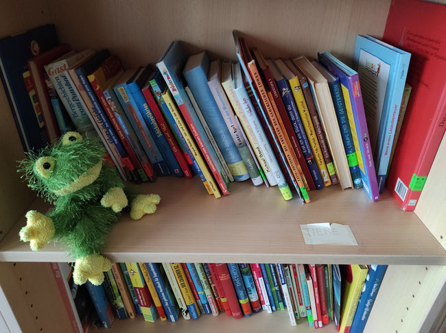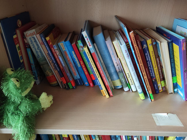 Aber die bunten Bücher machen mich auch neugierig! Es sind noch viel mehr, als in unserer KuTi-Bücherei!