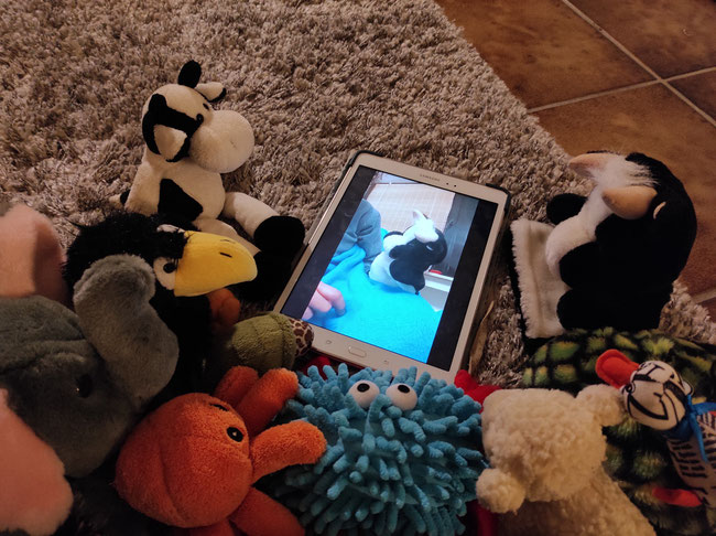 Heute gucke ich mit den anderen meine erste Videokonferenz von vorgestern an. Wir spielen nämlich Deutschland sucht das Super-KuTi. Meine Jury ist ganz begeistert und hat gesagt: Super, Gundi! Nun gibt sie mir ein paar Tipps, was ich verbessern kann. Azzurro meint, ich sollte ein paar Malaufgaben mehr stellen. Paula sagt, ich hätte sie unbedingt grüßen sollen.
