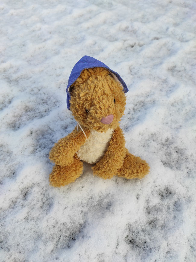 Wie findet ihr meine selbstgemachte Maskenmütze? Damit schütze ich meine langen Löffel. Ihr müsst wissen, die Kälte zieht schnell dort hinein, und ich bekomme schon mal leicht Ohrenweh.