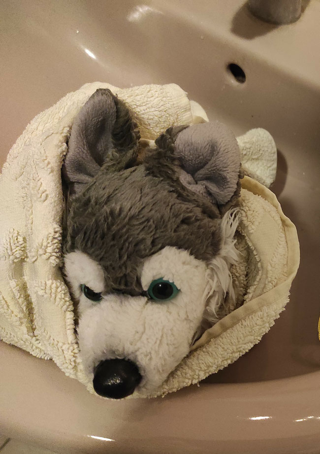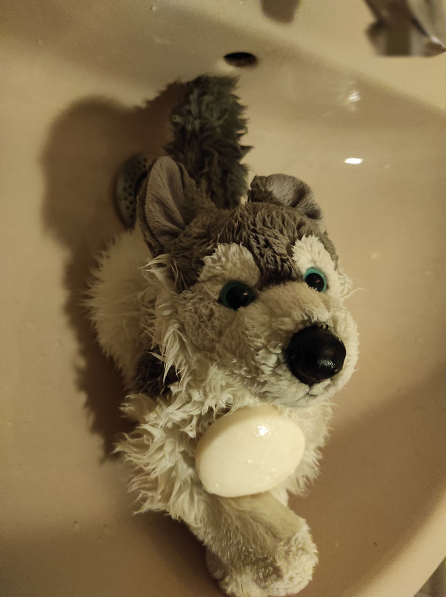 Und dann geht es weiter. Keine Sorge Odilo, ich werde garantiert kein Fleckchen vergessen. Sag mir bitte sofort, wenn ich zu feste scheuere!