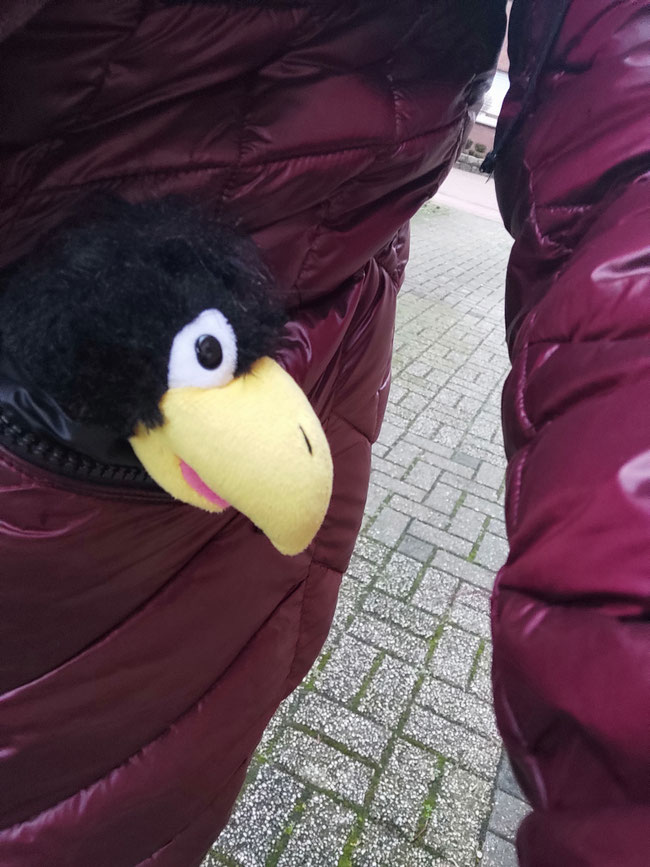 Heute gehe ich mit Mama Nicole spazieren. Sie nimmt mich in ihrer Jackentasche mit. Das freut mich riesig, weil ich dann immer wieder herausflattern kann! Ich liebe die strahlenden Lichterketten ja so sehr! So lange sie noch hängen, fliege ich von Weihnachtshecke zu Weihnachtsbaum und fühle mich wie ein Engel! Los geht's!