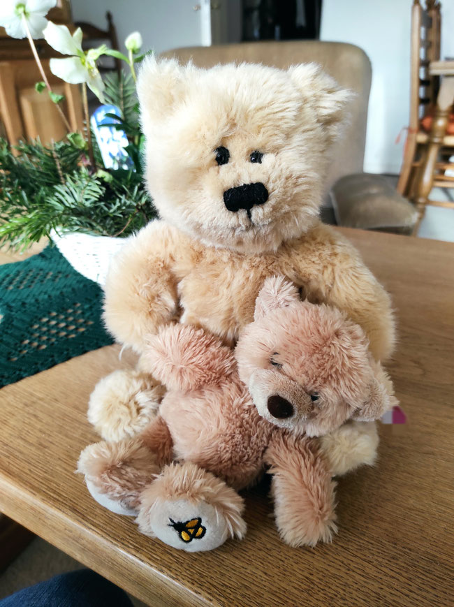 Heute stelle ich euch meinen Bruder Bieni-Bär vor. Der heißt so, weil er ein Muttermal unter dem linken Fuß hat, das aussieht, wie eine richtige Biene!