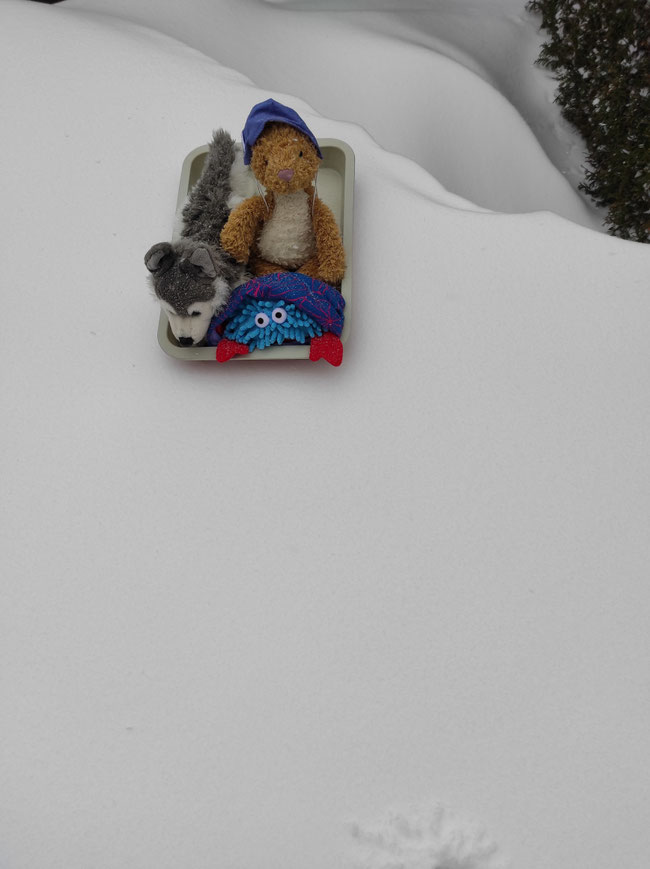 So lange sause ich nun durch den Schnee! Schon bin ich weg!