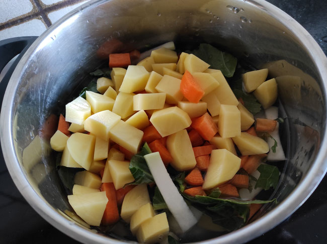 Man kann dieses Gemüse mit Kartoffeln zusammen kochen. Weil beides in einem einzigen Topf ist, nennt man die Speise "Eintopf". Für mich ist das ein richtiges Oma-Essen.