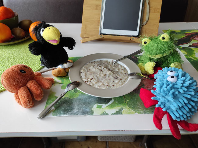 Odilo macht uns gerade einen heißen Porridge. Was das ist? Na, ein Haferbrei aus England. Odilo kocht auch noch Leinsamen und Banane mit! Njami. - Hört ihr, er ruft uns schon in die Küche, nichts wie hin, Leute!