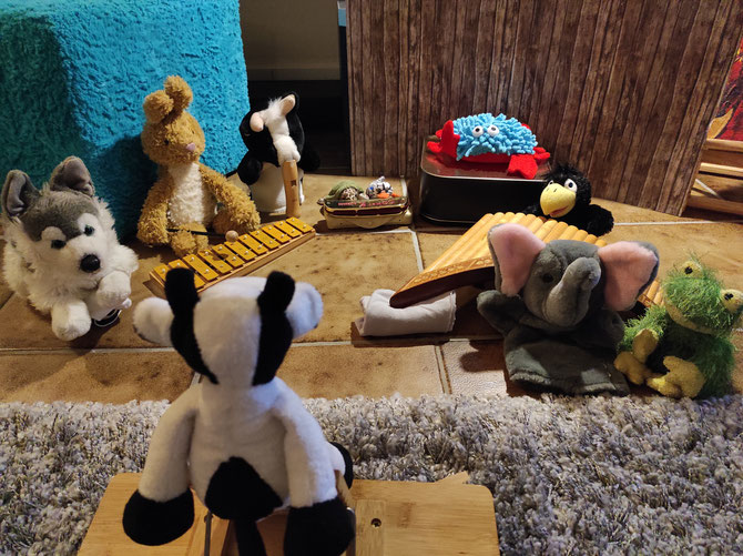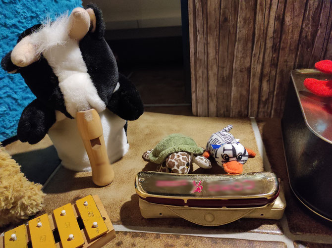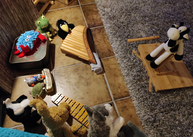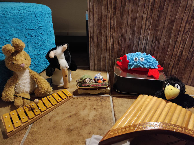 Ich probe gerade mit meinen MusiKuTis ein Geburtstagsständchen ein. Es klingt noch ein bisschen schräg, aber wir spielen immer besser zusammen.