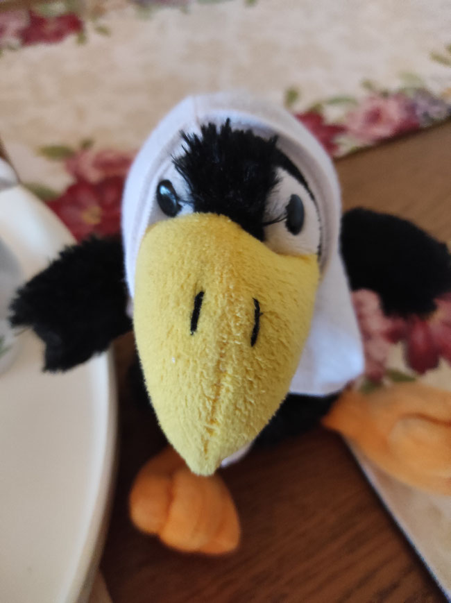 Was? Ihr glaubt mir nicht? Warum ich meinen Schnabel hinter dem Palmenblatt verstecke? Ihr glaubt wohl, er ist vom Lügen länger geworden!
