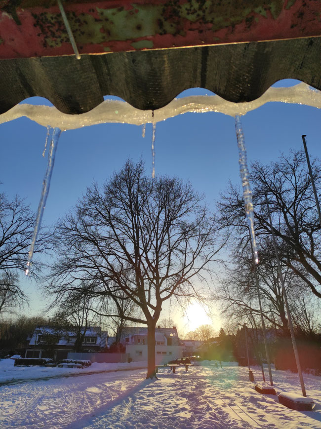 Paula war dabei und hat gerufen: Seht mal, da hängt ja eine Möhre aus Eis!