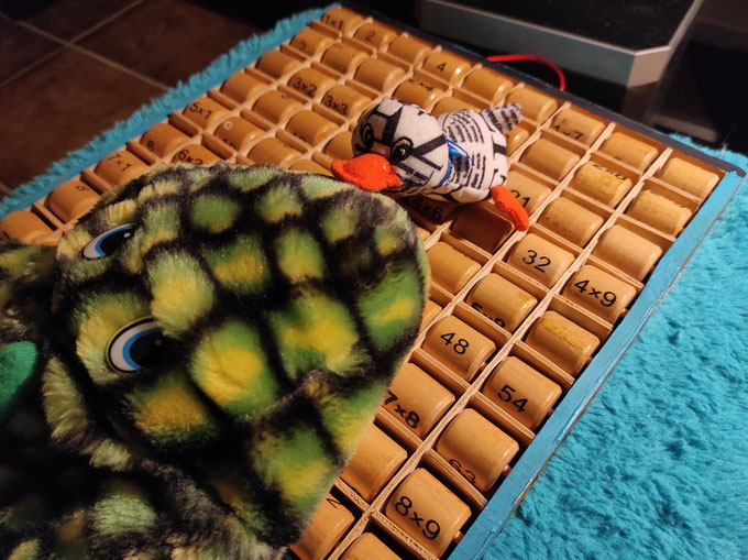 Seht mal, was ich in Mama Nicoles Arbeitszimmer entdeckt habe - einen ziemlich alten 1mal1-Rahmen. Ich habe sofort nachgefragt und darf ihn als Flitze-Maschine benutzen. Jetzt zeige ich euch mal, was ein richtiges Mathe-Training ist!