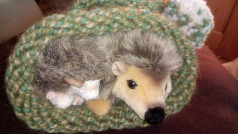 In der dicken Mütze mit dem Bommel haben wir ein kuscheliges Plätzchen und machen es uns so richtig gemütlich. Tschühüss!