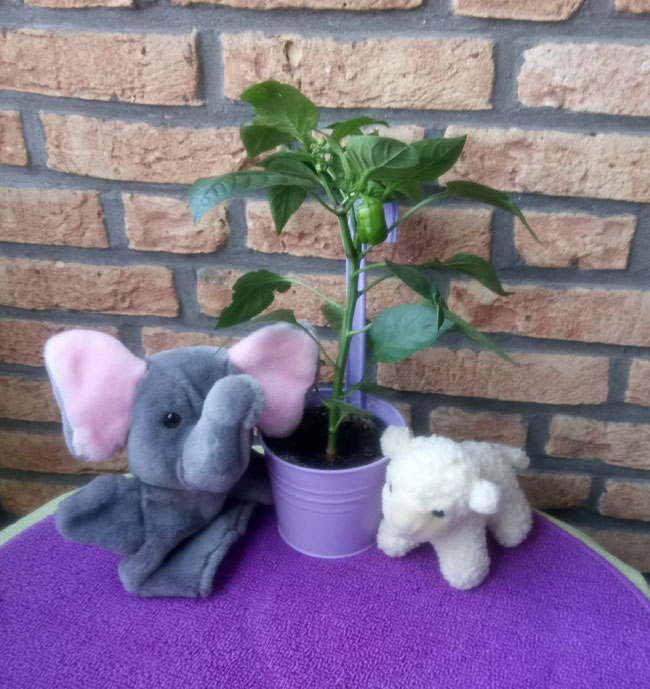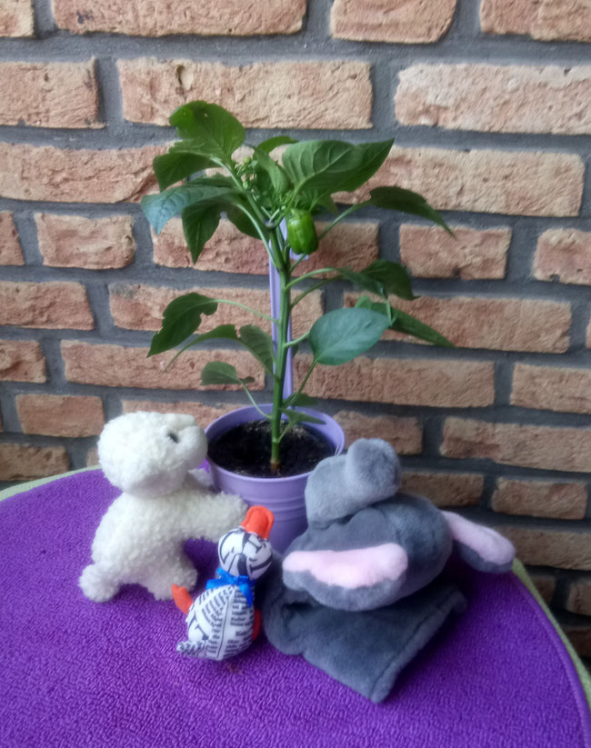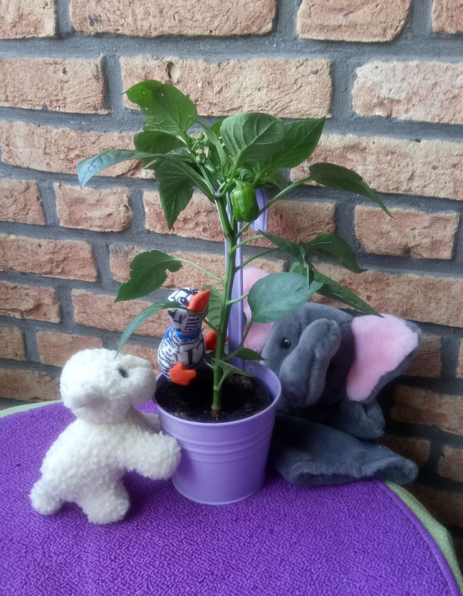 Wir sind sehr stolz, denn wir haben sie zu zweit gesät und gepflegt. Happy Birthday, kleine, grüne Paprika!