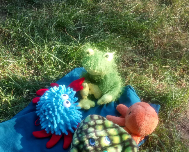 Frooooooooschi! Wo seid ihr nur? ... Ah! Nanu, was ist das denn, eine Versammlung? Rund um meinen Kürbis herum?