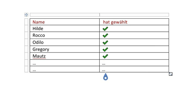 Ein Wahlhelfer oder eine Wahlhelferin hat eine Namensliste von allen, die in dem Raum wählen gehen dürfen. Er sucht in dieser Liste meinen Namen und macht einen Haken dahinter. Dann weiß die Stadt, dass ich, die KuTi-Hilde, gewählt habe.