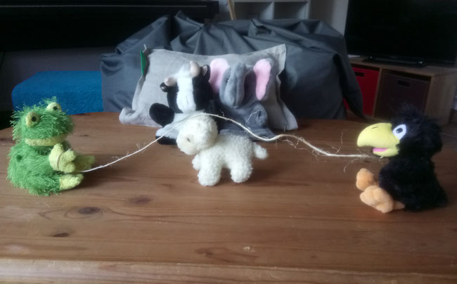 Sicher seid ihr nun auch gerade in der Schule. Unsere Lesestunde ist schon vorbei. Nun übt Heulia mit uns MATHE-KuTis das Rechnen. Wir zerlegen gerade Mengen oder setzen sie wieder zusammen.