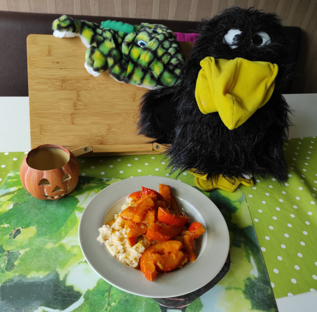 Dafür haben wir genau den Kürbis verwendet, den Panzerotti uns in die Küche gerollt hat - den Zauberkürbis. Ihr erinnert euch vielleicht an unseren 1. Beitrag in KuTikos 9.